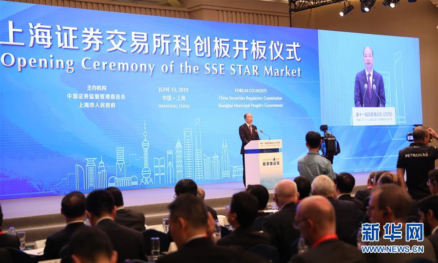 6月13日,上海证券交易所科创板开板仪式在陆家嘴论坛上举行。这是中国证监会主席易会满在开板仪式上致辞。