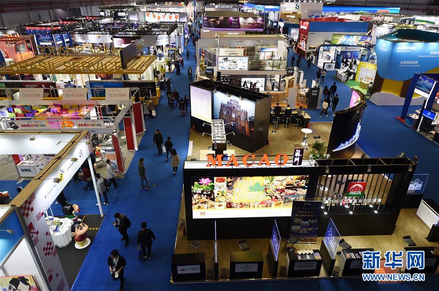 参观者在上海举行的首届中国国际进口博览会服务贸易展区参观(2018年11月10日摄)。