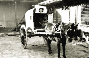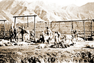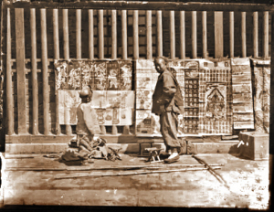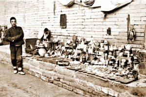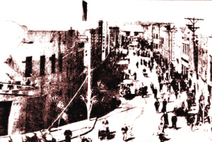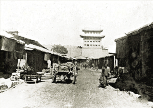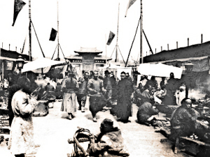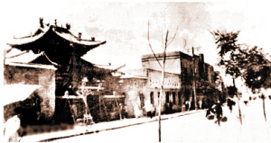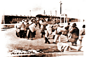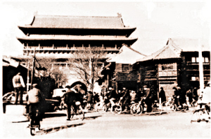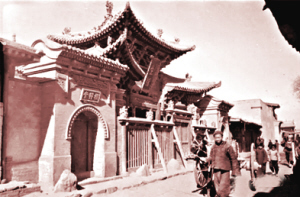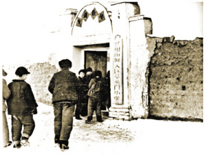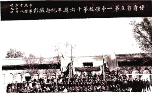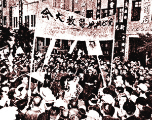 兰州市的工人、商人、学生、市民部手持红绿小旗,欢迎解放军入城。