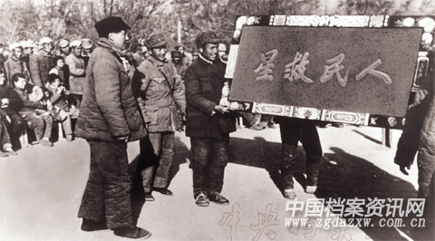 1946年春节,延安人民向毛泽东献“人民救星”匾。