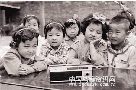 1979年6月1日,山东省济南市机床八厂幼儿园的孩子们正在收听少儿节目。 山东省档案馆藏
