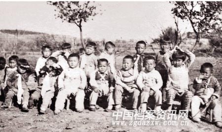1946年,胶东育儿所大班的孩子们在海阳县留格庄镇姜格庄村户外合影。 山东省威海市档案馆藏