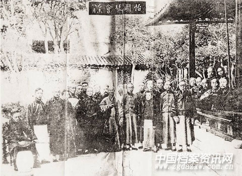 1919年10月18日,怡园琴会在怡园藕香榭举行,环境布置雅致,15张名琴陈列四周。雅集内容丰富,主要分:“畅叙琴话”“轮流抚琴”“单独鼓瑟”“试声箜篌”“研究学术”“入座飞觞”“乘兴双弹”“鸿雪留痕”等。其中“轮流抚琴”“单独鼓瑟”“试声箜篌”“乘兴双弹”都是古琴、瑟、箜篌等雅乐表演,而“研究学术”主要是与会者对琴学原理、技艺方法进行探讨。“鸿雪留痕”则是与会者合影、绘图、征题等。