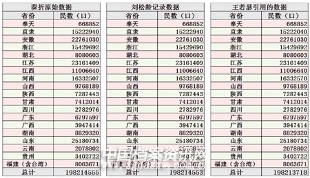 清乾隆二十六年(1761),各省民数汇总数据的不同版本。