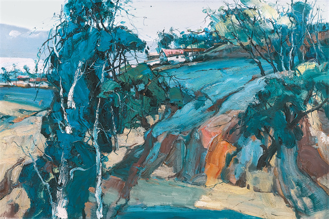 鱼龙宁家山村(油画) 冯建华