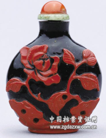 清 黑套豇豆红玻璃茶花纹鼻烟壶 故宫博物院藏