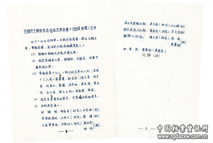 全国民主妇联常委名单及常委会下各部处负责人名单 中央档案馆藏