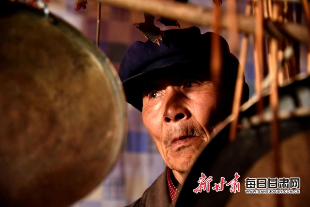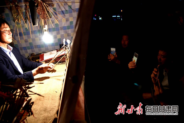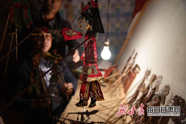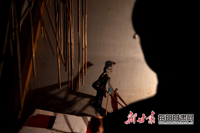 日前,在渭源县文化广场,非遗传承人潘明生演出皮影戏,引来众多群众驻足观看。