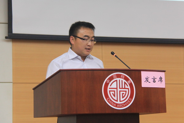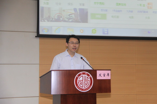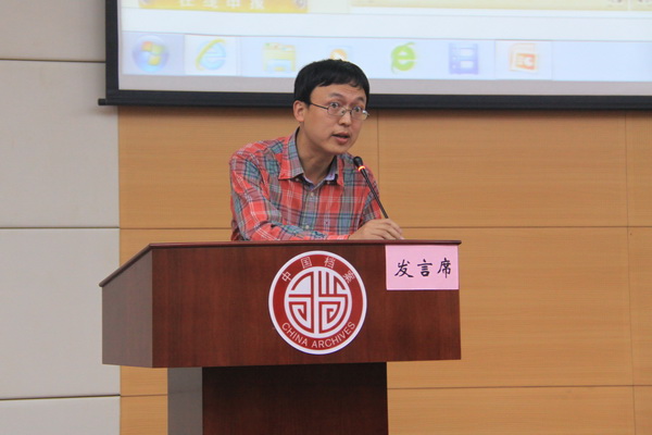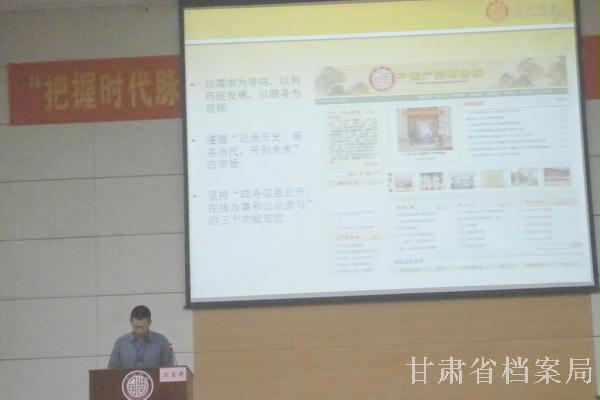 甘肃省档案局顾世文在大会作题为《甘肃省档案网站的基本情况与主要做法》的交流发言 中国档案报社 张雪 摄