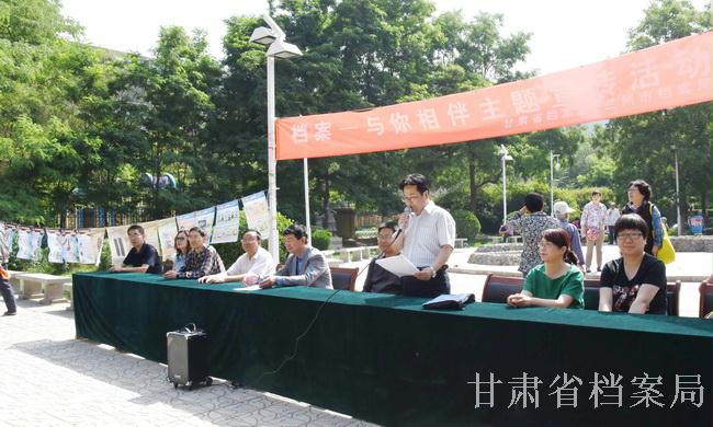 6月9日,在第七个"国际档案日”之际,为更好地贯彻落实省档案局安排部署的档案法律法规"七进”活动,甘肃省档案局、兰州市档案局和西北师范大学档案馆在西北师范大学社区广场举办了"档案与你相伴”——2015年国际档案日主题宣传活动。甘肃省档案局副局(馆)长王少华、西北师范大学副校长丁虎生和兰州市档案局局长李永生等出席活动并讲话。