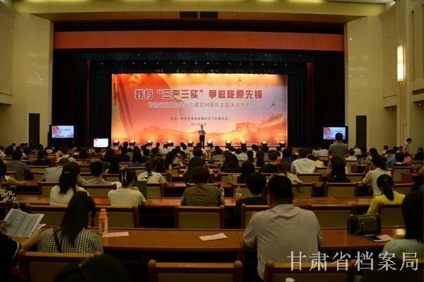 为进一步将省直机关学习贯彻习近平总书记系列重要讲话精神引向深入,推进"三严三实”专题教育活动,不断强化广大党员干部的党性观念,努力营造守纪律、讲规矩、干实事、求实效的浓厚氛围。省机直关工委在建党94周年之际,于2015年6月17-18日在省委会议中心组织开展了"践行‘三严三实’、争做陇原先锋”主题演讲活动,这次演讲活动有省直54个部门和单位选报的57年节目参加决赛。甘肃省档案局参加了此次演讲决赛。经过激烈的角逐,我局开发利用处栗虹同志最终取得二等奖的好成绩。选手以饱满的热情颂扬了我省档案系统通过群众路线教育实践活动和"三严三实”专题教育取得的成果和带来的新的精神风貌,讴歌了档案人勇于吃苦、甘于奉献的可歌可泣的动人事迹。演讲感动了现场观众,引起了大家的共鸣。