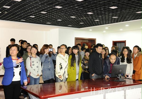在省档案局工作人员带领下学生们先后参观了档案查阅中心、爱国主义教育基地、档案特藏展览室、收集整理处、监控中心等,接受爱国主义教育。
