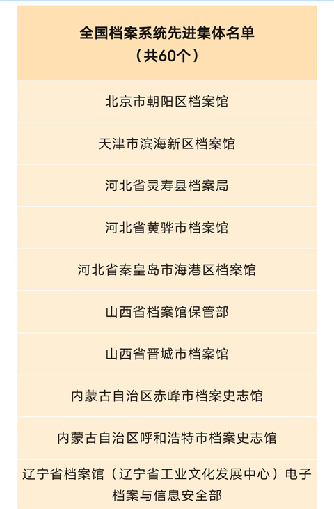 1月29日至30日,全国档案工作暨表彰先进会议表彰了全国档案系统先进集体和先进工作者。以下为具体名单。
