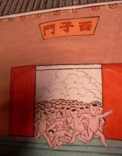轿停之处,新媳妇竟相摘取轿前悬挂的荷包,希望赐下娇儿,人们争先恐后钻轿子,意为消灾免难,保佑平安。