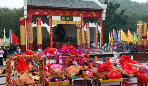 2013年百色市壮族人文始祖布洛陀祭祀大典在广西田阳县敢壮山朝拜广场举行,来自广西区内外壮族地区的上万名朝拜者共同祭拜始祖布洛陀,祈求在新的一年里平安幸福、五谷丰登。布洛陀是壮族先民口头文学中的神话人物,是创世神、始祖神和道德神。每年的农历三月初七到初九,海内外几十万壮族同胞都会自发来到布洛陀起源的敢壮山,祭祀始祖布洛陀。来自泰国、越南、老挝、缅甸等东盟多个国家以及中国广西、云南、贵州、海南等地壮侗语系八民族同胞参加了祭祀活动。2013年百色市布洛陀民俗文化旅游节当天开幕。来自泰国、越南、老挝、缅甸等东盟多个国家以及中国广西、云南、贵州、海南等地壮侗语系八民族同胞参加了祭祀活动。[4]