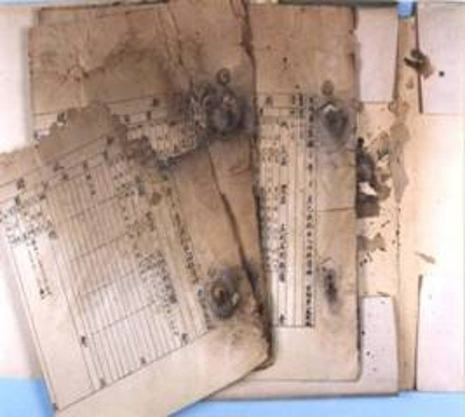 我馆馆藏档案有些形成于民国时期。百余年来,由于自然环境和保管条件等不利因素的影响,部分档案纸张发生虫蛀、鼠咬、霉变、酸度超标脆化等支离破碎现象。我们针对这类破损档案,给予除尘、消毒、去污等处理,经过修补、修裱,使之得以抢救。