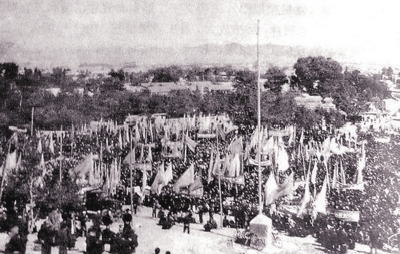 “中山林早先只是一个植树造林的地方。”张敦田一边回忆一边讲述,思绪已沉浸在那久远的记忆里:“时至1939年,省政府则把中山林选定为安放孙中山先生铜像的地方。同年10月完成了奠基,并于11月12日暨孙中山先生诞辰73周年之际,在中山林隆重举行了孙中山先生铜像落成揭幕典礼。孙中山先生的铜像面东而立,高2.4米,手拄‘文明棍’,凝视远方、神态自如、栩栩如生。”从这一天起,中山林也就成了人们瞻仰这位伟人仪容风采的地方。
