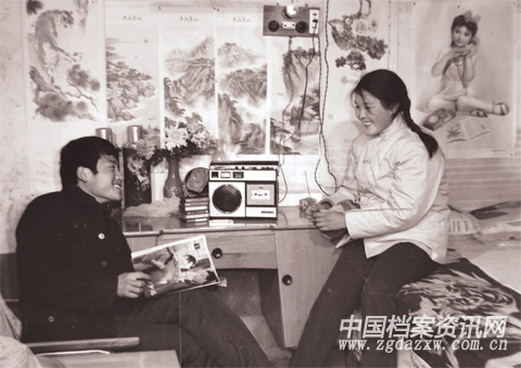 “新年好,快乐的新年多热闹。穿新衣、戴新帽,大家乐、乐陶陶,大家欢迎新年到……”当这熟悉的旋律在耳畔响起时,新年的脚步就渐渐地近了。20世纪80年代初,特别是在农村,每当临近春节,谈婚论嫁之事就会接二连三的“上演”。扯块布料做新衣,选好家电办年货,新婚、新年的“喜上加喜”,让每个人的脸上都洋溢着笑容。山东省济宁市任城区档案馆馆藏的老照片呈现了当年“准新娘”赶做新衣和新婚夫妇聊天的场景。