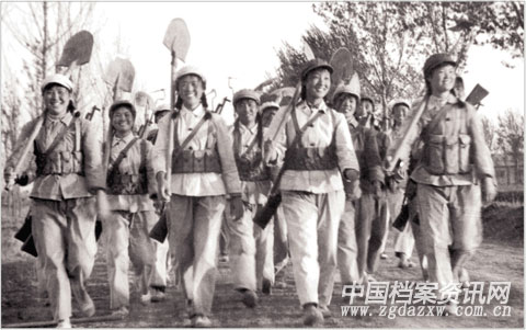20世纪60年代末70年代初,毛泽东主席发出了“要准备打仗”的号召,目标是建立一支平时能生产、战时能打仗的准战斗部队。1970年9月18日,山东生产建设兵团成立大会在济南举行,全省数万名城镇知识青年积极响应党的号召,报名加入建设兵团。从1970年到1974年,山东生产建设兵团多次招收兵团战士,最多时达2.7万余人。在那艰苦的岁月里,兵团战士把“备战防边,生产建设”作为努力的目标,无论是饲养牲畜、护林种田,还是搞军事训练,样样成绩不俗。