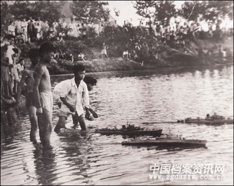 1959年5月1日,山东省济宁市举办的航海航模比赛中划艇竞渡异常激烈。