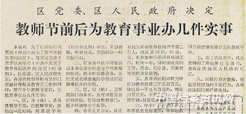 1985年8月10日,《广西日报》一版刊登了《区党委、区人民政府决定教师节