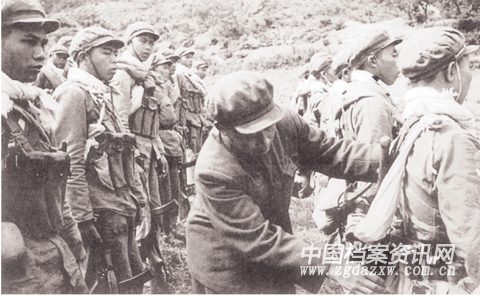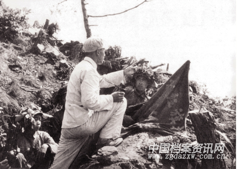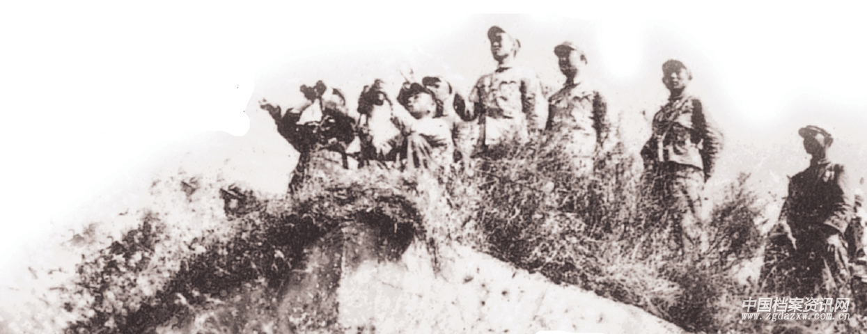 志愿军第68军204师首长带领司令部人员勘察进攻路线