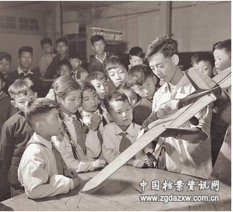 1960年6月1日,小学生们聆听航模基础知识讲解。 谭铁民 摄