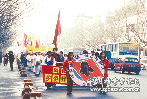 1999年3月4日,岳阳市第一中学师生走上街头宣传“学雷锋精神 做四有新人”活动。