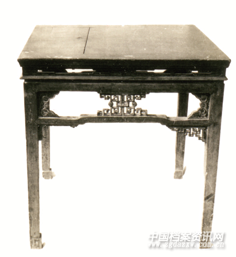 在西柏坡周恩来旧居的办公室内,陈列着一张方桌。方桌为枣红色木质材料制成,长82厘米、宽82厘米、高85.5厘米,四面有镂空雕花,在民间被称为“八仙桌”。方桌除桌面有轻微的划痕外,全部雕花都完好无损,是一件难得的中式家具。