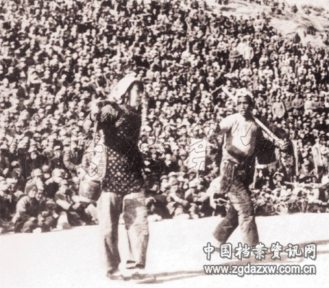 延安文艺工作者正在演出《兄妹开荒》