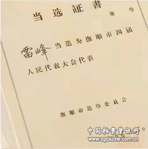 1961年5月26日,辽宁省抚顺市选举委员会发出的一份当选证书上写着:“雷峰(注:应是‘雷锋’)当选为抚顺市四届人民代表大会代表。”从此,不满21岁的雷锋光荣地成为一名人大代表。