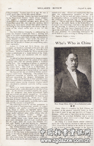 1919年8月9日,《密勒氏评论报》在《中国名人录》栏目对张謇的介绍。