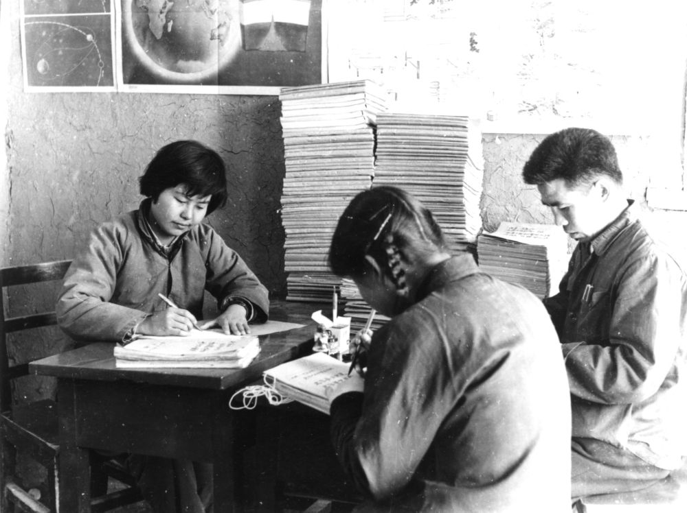 1964年,樊锦诗(左一)正在工作。(敦煌研究院供图)