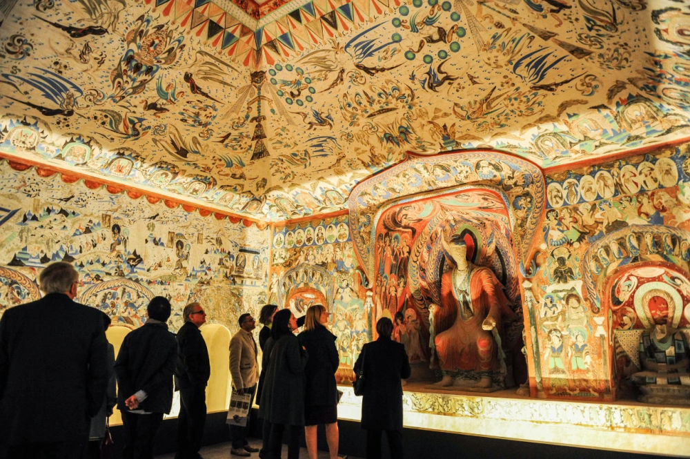 在美国洛杉矶,观众观看“敦煌莫高窟:中国丝绸之路上的佛教艺术”展览(资料照片)。新华社记者 张超群 摄