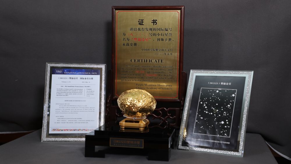 “樊锦诗星”模型及证书。新华社记者 张智敏 摄