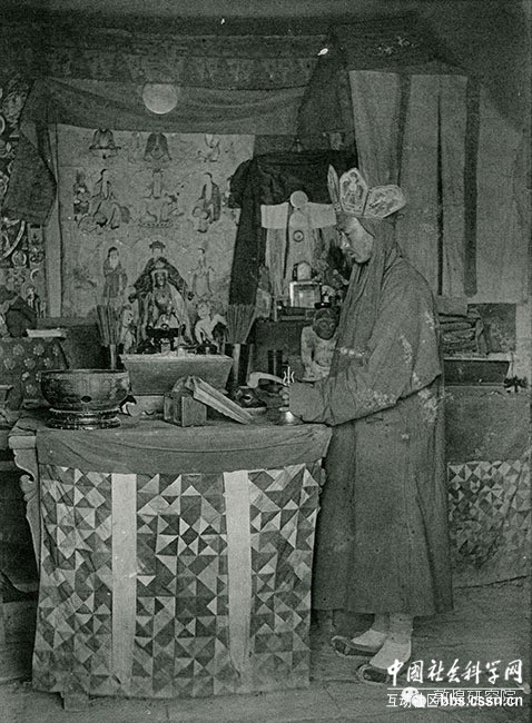 在莫高窟做法事的僧侣-1908年