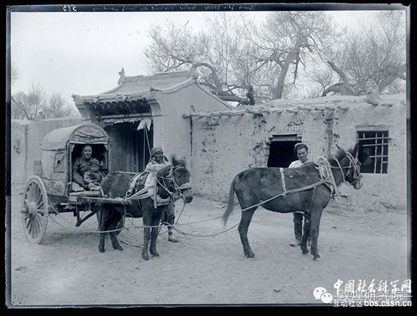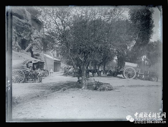 莫高窟中寺门前的马车-1908年