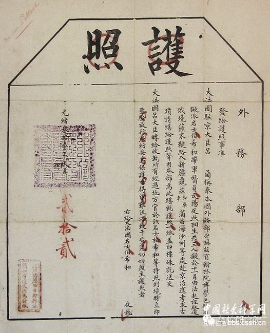 光绪三十一年(1905年)清政府于发给伯希和的护照