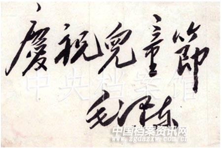 1950年6月1日,毛泽东为儿童节题词。 中央档案馆藏