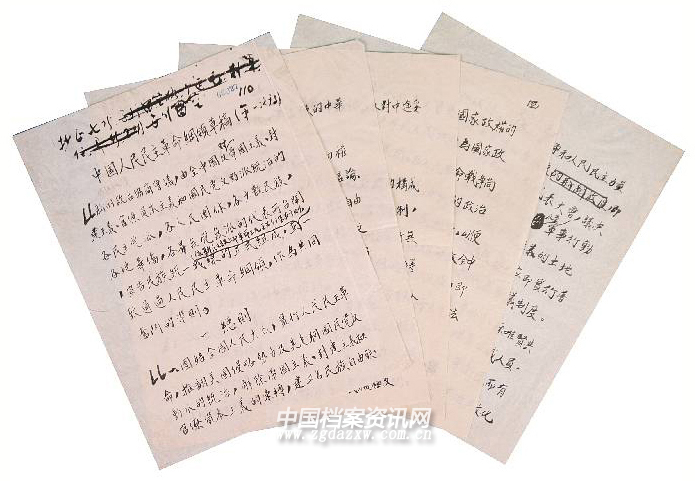 9月,纲领的起草工作进入最后阶段,毛泽东亲自参加各次过程稿的修改工作。纲领的名称随着政协名称的变动而改为《中国人民政治协商会议共同纲领》。其结构也做了改动,分为序言和总纲、政权机构、军事制度、经济政策、文化教育政策、民族政策、外交政策7章,总计60条7000余字。这份纲领草案既明确地规定了新中国的国体、政体,又完整地规定了新中国的政治、经济、文化、教育、民族、外交等政策的基本原则。