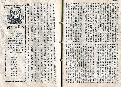 史学家翦伯赞以庄重的语气介绍了陶行知的生平:“在清光绪十七年(1891)九月十六日,生于安徽歙县西乡王墩源村,原名文濬,嗣因信任王阳明知行合一,易名知行,后发现‘行是知之始,知是行之成’的道理,乃再易名行知,家境清贫,借债赴美留学,先后入伊利诺大学、哥伦比亚大学,为名教育家杜威所器重。”