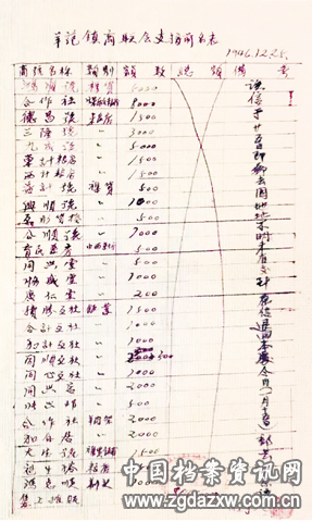 1946年12月25日,邢台县羊范镇商联会支援前线花名表。
