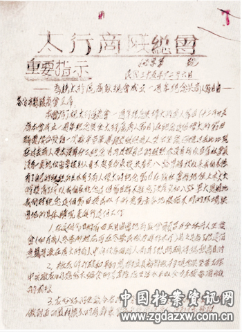 1946年12月6日,关于太行区商联总会成立一周年纪念与商人节日的重要指示(部分)。