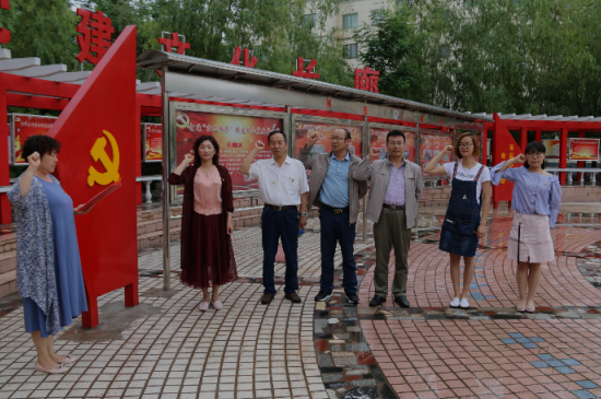 在党建文化长廊,党员干部面对鲜艳党旗庄严地宣誓,表达为党的事业奋斗终身的决心和愿望。