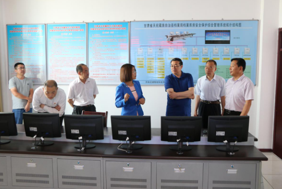 2018年8月8日至9日,省档案局局长潘胜强、省档案局办公室主任李永新、业务指导处副处长陈正强一行3人,在武威市档案局局长赵德斌的陪同下赴天祝县石门镇维芨滩村、天祝县档案局、凉州区档案局新馆项目现场、凉州区靶场社区调研指导档案工作,仔细询问了今年以来市、县(区)档案工作开展情况和重点工作任务完成情况,查阅了相关档案资料。