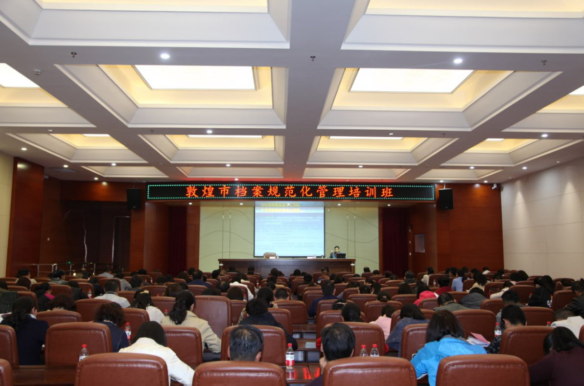 2018年4月10日下午,敦煌市档案局举办“全市档案规范化管理培训班”,由酒泉市档案局业务指导科科长刘学斌、敦煌市档案局副局长刘晓玲对各单位进行为期半天的档案规范化管理培训,各立档单位档案工作人员160多人参加了此次培训。