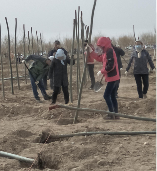 连日来,局机关全体党员干部职工在甘州区黑河生态园造林现场,挥汗如雨,播添新绿。在林业部门技术人员的指导下,在党员领导的躬身示范下,党员干部克服风沙、降水的不利天气,三五人一组,撸起袖子,挥锹铲土,起垄挖穴、扶苗培土、平地浇水,高质量完成了义务植树任务,为全市国土绿化做出了应有的贡献。