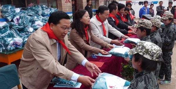 局领导首先查看了学校基础设施建设情况,向校领导了解特困儿童的和留守儿童的学习、生活情况以及学校师资情况。在随后举行的新校服发放仪式上,局领导向小朋友们送去了节日的祝福,希望小朋友们热爱家乡、热爱祖国,好好学习、立志成才;并向为贫困地区教育事业付出辛勤汗水的教师致以崇高的敬意,希望全体教师身体健康、工作顺利。
